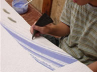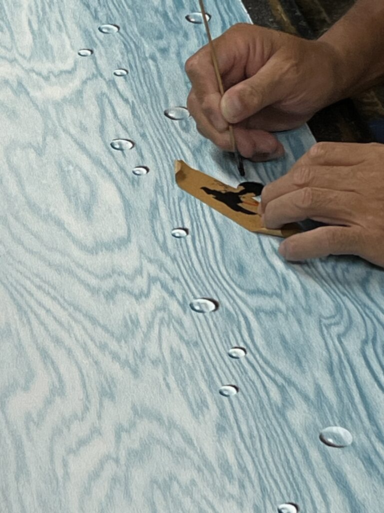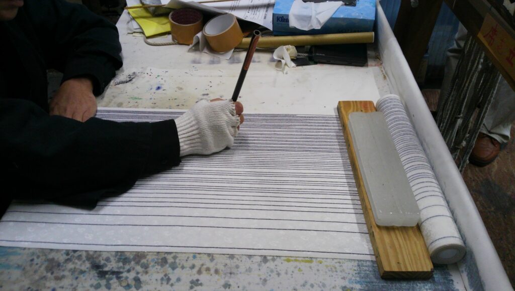 - 1966年 戸塚工芸社入社 父恒治より引き染ぼかしと一珍染、兄更聖より江戸更紗を習得